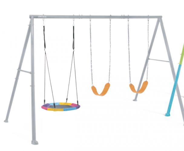 JUEGOS DE PLAZA INTEX DOS HAMACAS + CABALLITO + BARRA TRAPECIO (44131) GRIS