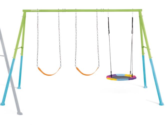 JUEGOS DE PLAZA INTEX DOS HAMACAS + CABALLITO + BARRA TRAPECIO (44130) VERDE+C